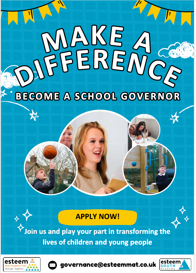 To apply to be a governor at Esteem South Academy or find out more information about this exciting volunteer opportunity. Please contact Janine Dix our Executive Headteacher on janine.dix@esteemsouthacademy.co.uk.